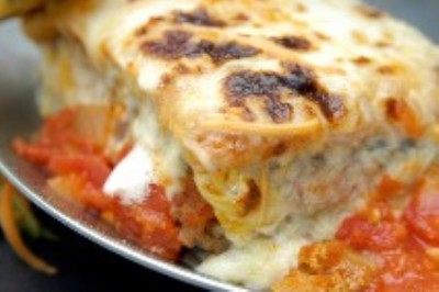 The cost breakdown makes it pretty economical too. About $2-3 worth of cauliflower (I used frozen & 2 bags was perfect), $2 for spaghetti sauce, $2 for the ground turkey (we got it out of the discount bin – I know it’s not usually that low!), $1 for cottage cheese, a few cents worth of Parmesan, $4 worth of mozzarella, and about $1 worth of eggbeaters. Total cost for 4 servings was $12-13, which comes out to about $3 and maybe a few cents per serving. Sure not going to find any form of lasagna for that price at a restaurant! And it’s about $2 a serving cheaper than my famous lasagna recipe!